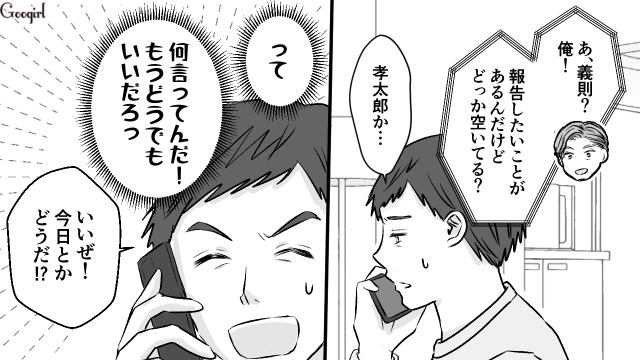 ▽ 孝太郎からの思わぬ結婚宣言。義則が孝太郎を羨ましく思っていたのと同時に、孝太郎も家族のいる人生を送る義則を羨み、そして尊敬していたようですね。義則には、これから自由で孤独な生活が待っていることでしょう。