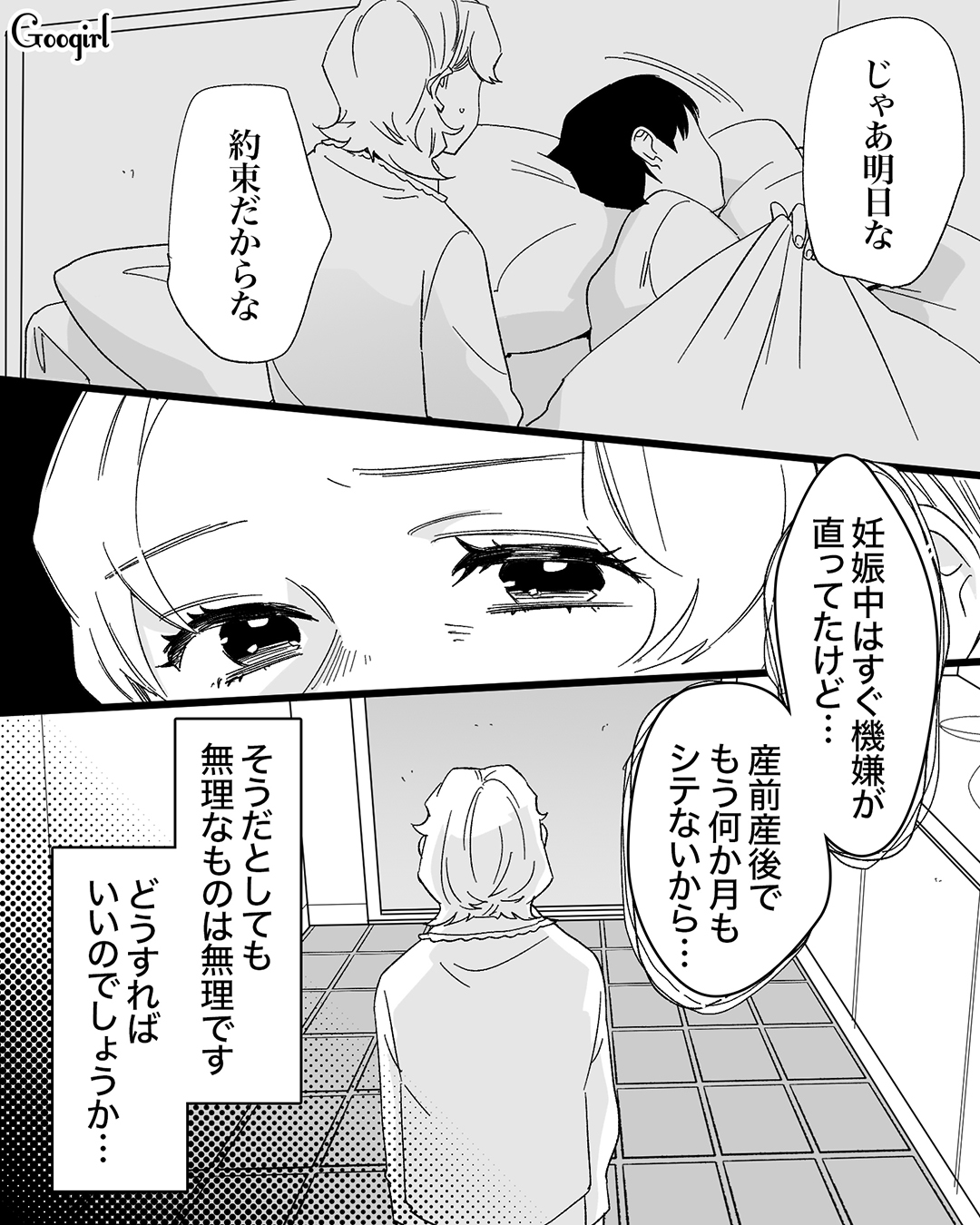 里帰り出産から帰ってきた、産後一ヶ月の真帆を抱こうとした誠司。体調が戻らないと知っていたはずなのに、できないと分かると誠司はあからさまに不機嫌になりました。真帆は、こんな人じゃなかったのに……と昔を振り返って……。