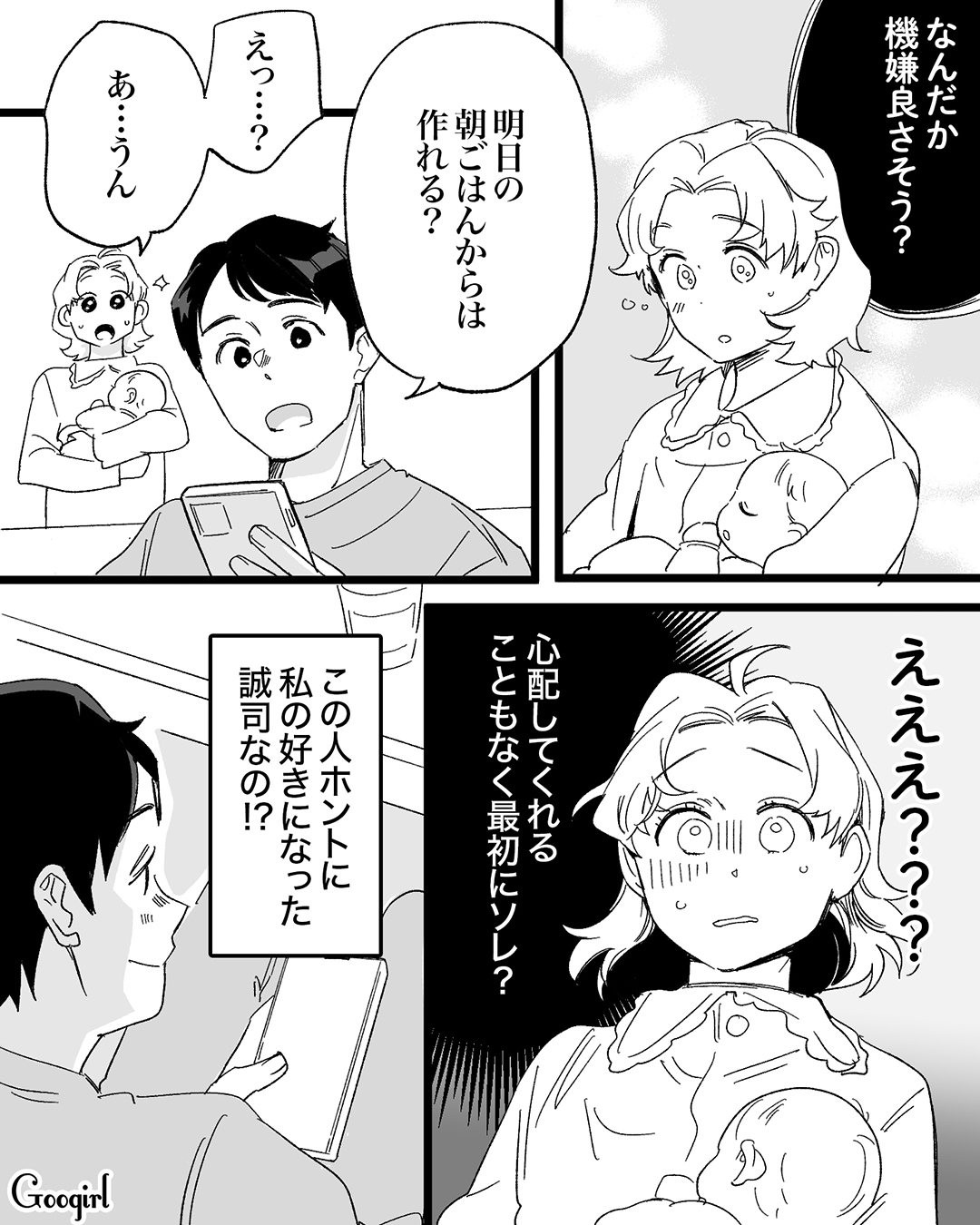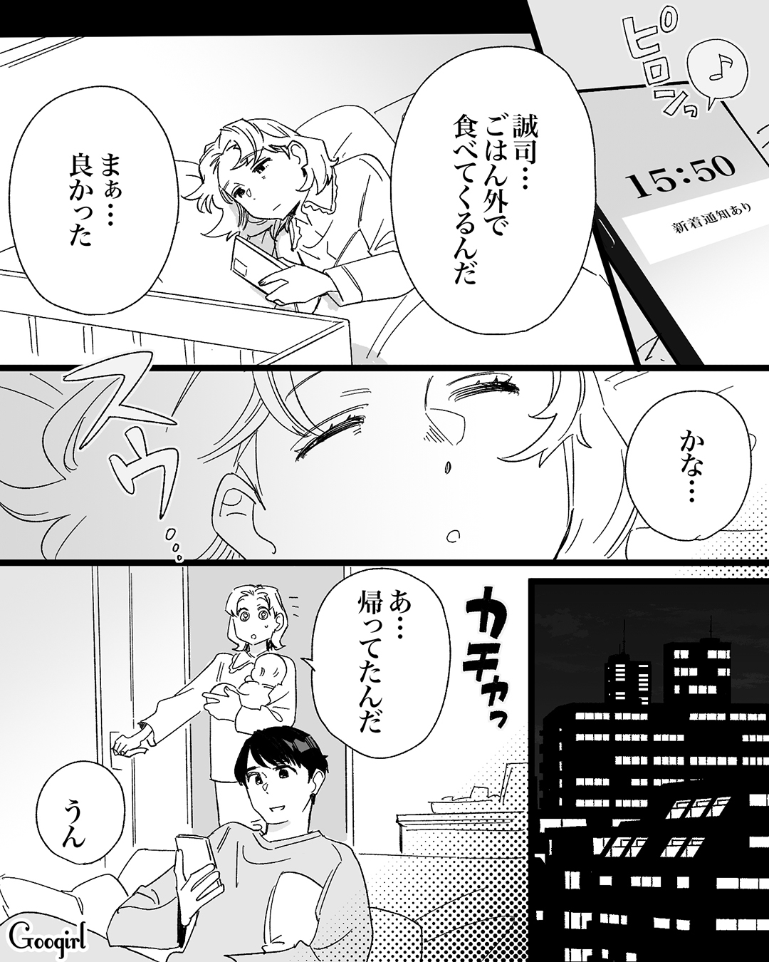 ▽ こんなに大変な思いをして子育てをしているのに、パパである誠司はまるで他人事ですよね。しかも妻の体調を少しも心配する様子はなく……。これでは悲しくなってしまいます。素敵な男性だと思っていたならなおさら、この変わりようにはガッカリですよね。