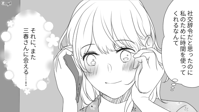 大学時代からの親友・志保と、社会人になっても仲良くしている立花。志保が相談していた相手・三春と付き合うことになり、立花も心から祝福します。紹介の場で出会った三春は、思わず見惚れるほど魅力的な男性でした。「恋がしたいな」とつぶやいた立花に、三春は知人の男性を紹介してくれることに。社交辞令の「可愛い」の一言に、立花の心が揺れはじめるのでした。