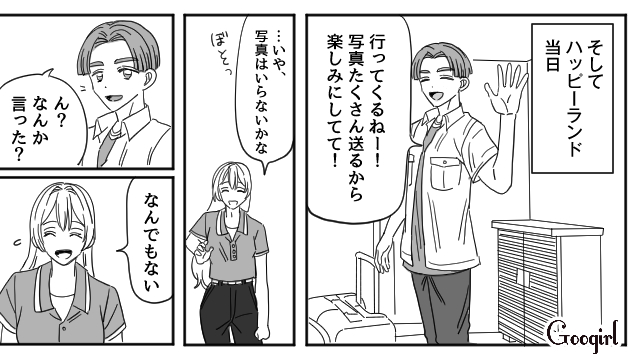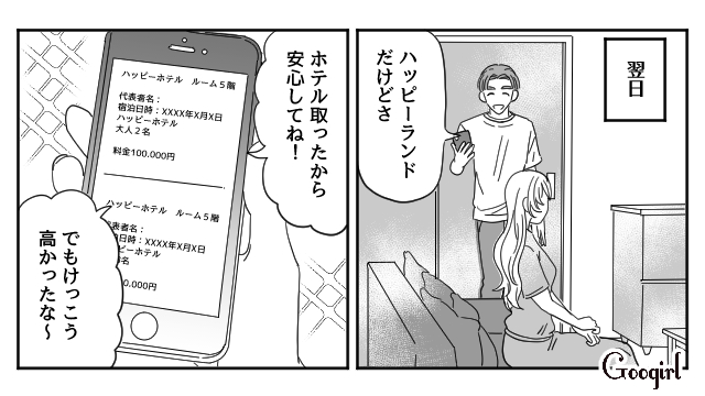 ▽ 義家族が自宅に泊まることはなんとか阻止した優子でしたが、その代わりに亮介が高級ホテルを予約するのでした。義家族の宿泊費を全額負担する様子に、優子は不安を覚えます。そしていよいよハッピーランド当日、亮介は頼まれてもいないのに家族の写真を次々と送ってくるのでした。