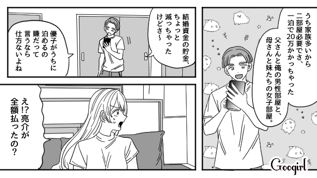 自分よりも実家を優先するだけでなく、同棲している自宅にまで泊めようとする亮介。さらに当然のように“私のベッド”を家族に明け渡せと言われた優子は、はっきりとそれを拒絶しました。
