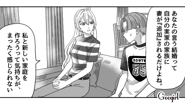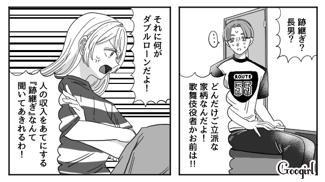 ▽ 「長男」「跡継ぎ」「家族第一」と押しつける亮介に、ついに堪忍袋の緒が切れた優子。「あなたと結婚するくらいなら一生独身の方がマシ」という本音を告げ、そのまま亮介を詰めていきます。