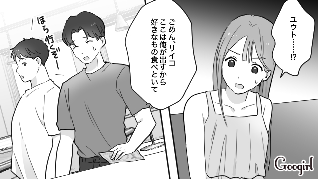 ▽ 観光街についたリイコたちは、レンタル浴衣を着ようとしますが、シンヤは「自分は着ない」といい、結局は浴衣を諦めることに。やっと入ったランチのお店でも、シンヤは食欲がない様子で、外の串焼き屋に目を奪われます。残ってほしいというリイコの気持ちも届かず、ユウトはお金だけ置いてシンヤと連れ立って出て行きました。