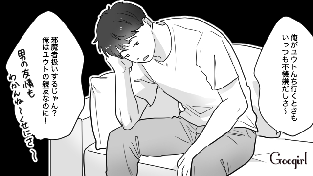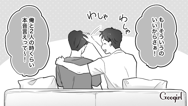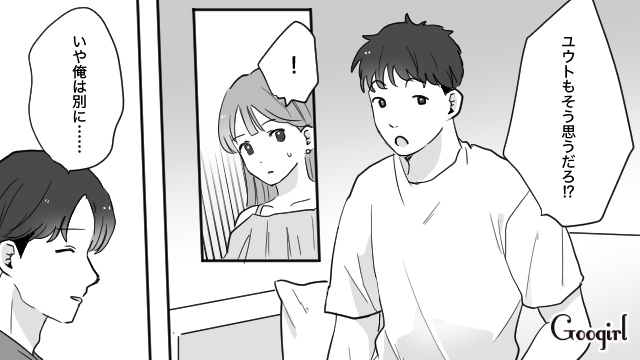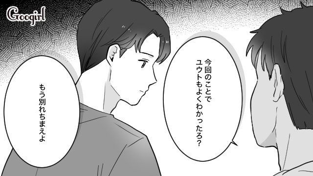 ▽ リイコの存在に気付かず悪口を言うシンヤ。「わがままだと思うだろ?」という言葉に、ユウトは同意してしまいます。信じていた分、リイコが大きなショックを受ける中、さらにシンヤは「もう別れちまえよ」とユウトに迫ってきて……。