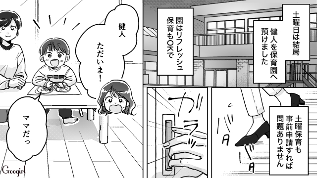 息子を保育園に預けて働きに出ることになった光莉。夫に協力を求めるものの、夫の圭吾は「家事育児は母親の仕事」という考えだったようで……。