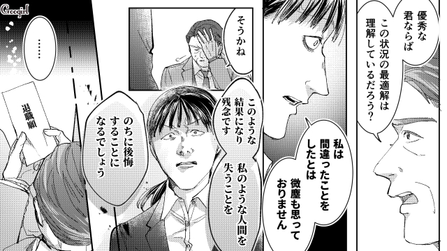 ▽ カヨは自分から退職を選んだようです。「完璧さ」を追い求め、誰よりもストイックに努力してきたカヨ。パワハラで訴えられたことで、経歴に傷がついてしまったショックは、かなりのものだったようで――?