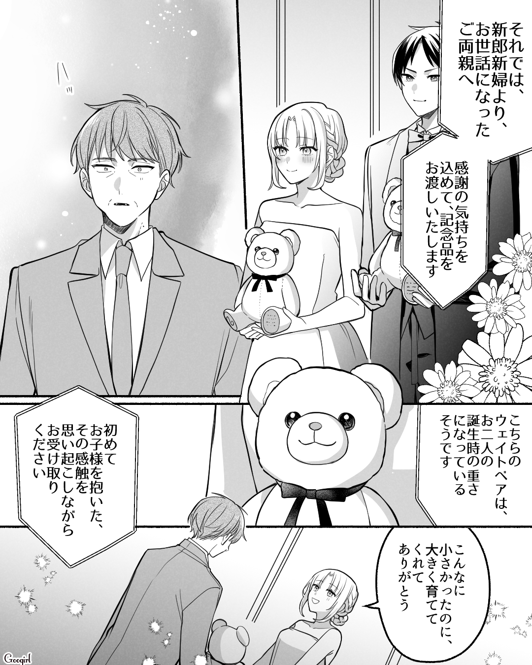 ▽ 生まれたときと同じ体重のウェイトベア。それを大きくなった我が子から手渡されるのって感慨深いですよね……。「もっと早く抱っこしてあげていれば」と悔やむお父さんですが、「大きく育ててくれてありがとう」という娘さんの言葉がすべてですよね。