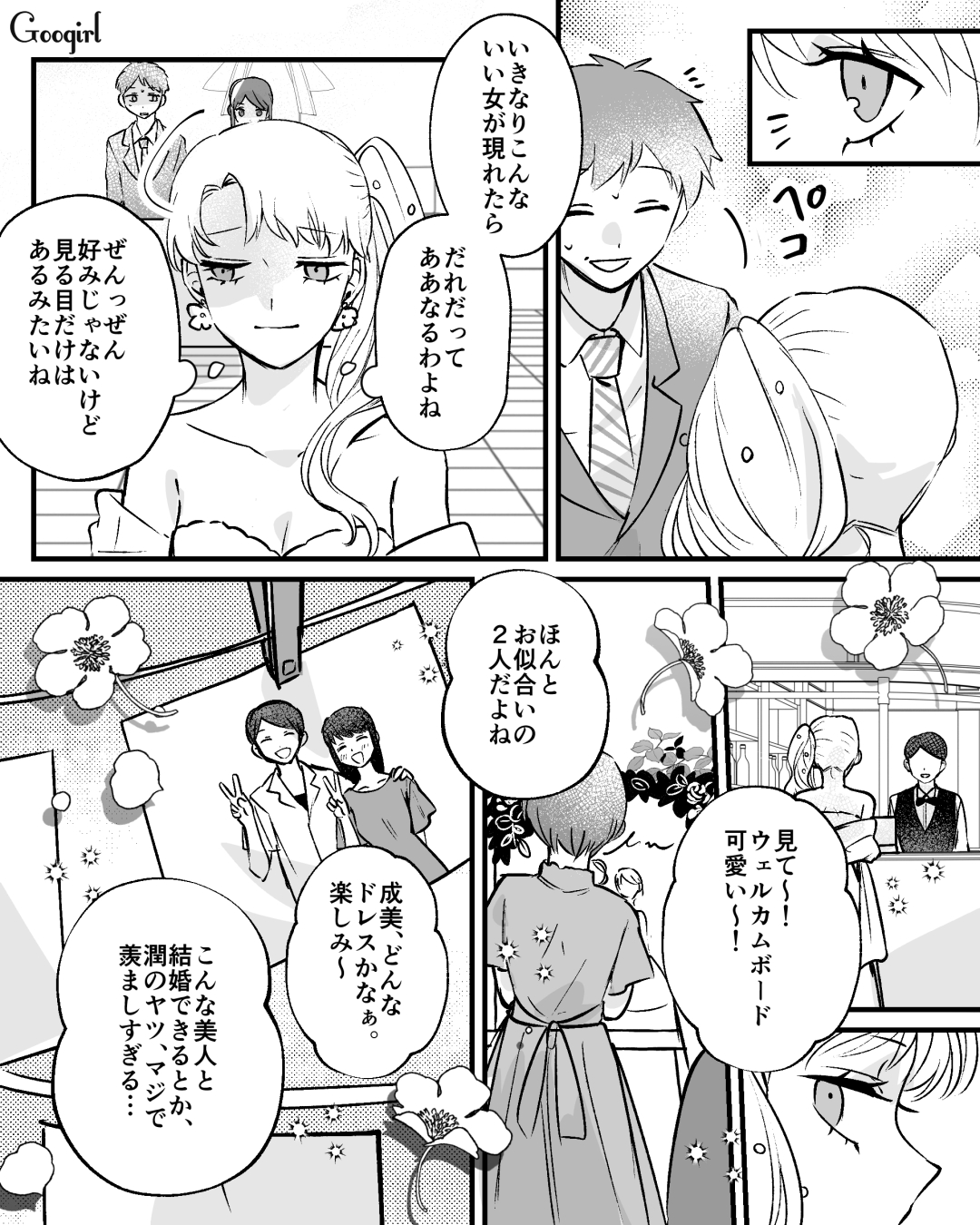 ▽ ついにやってきた成美の結婚式当日。真っ白なワンピースに身を包み、気合十分に参戦しますが……。ウエディングドレスを着たかったという優樹菜の夢は、まだ胸の中にくすぶっているようです。