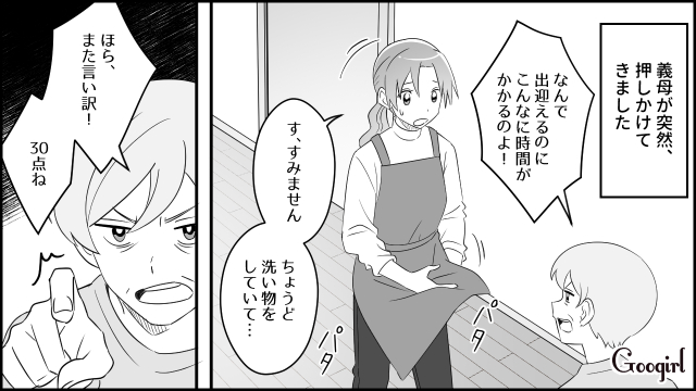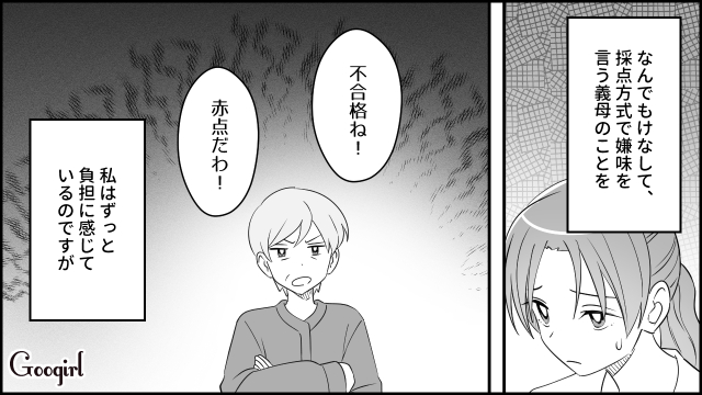 義家族との関係や距離感は難しいものですね。なにかと口を出しがちなタイプの義母も存在します。嫌味や文句ばかり言われたら、もちろん嫌ですし、それが点数化されるような形だったら、「人を採点できる身分!?」とでも言いたくなりますね! 秋奈の義母は嫁を点数化して評価してくる人で、秋奈はずっと我慢して生活してきました。夫の敬太も母親の肩ばかり持って……。