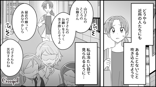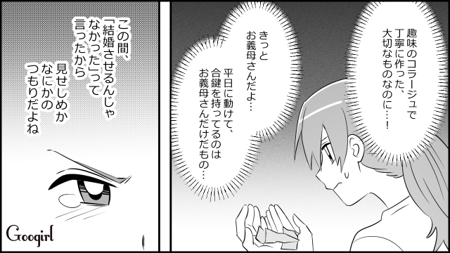 ▽ 身勝手を押しつけた上に、悪口の吹聴、大切なものの破壊……と、義母はやりたい放題です。秋奈の苦しみは高まる一方ですね。