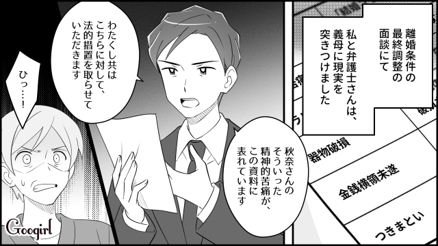 ▽ ついに離婚までこぎつけた秋奈。頑張りましたね! 最後に秋奈から義母へプレゼントがあるようです。果たして読んだ義母は……?