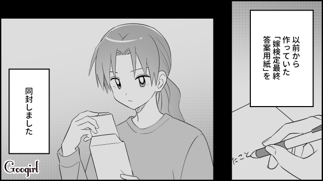 「嫁検定最終答案用紙」投函