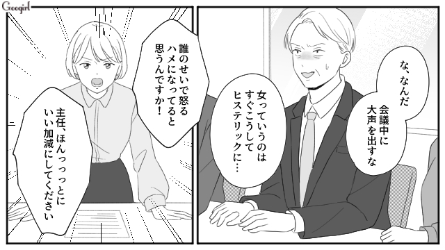 会議の席で、責任者を玲奈ではなく無関係の男性社員に、と古谷主任は言い出しました。ついに玲奈は堪忍袋の緒が切れて……。