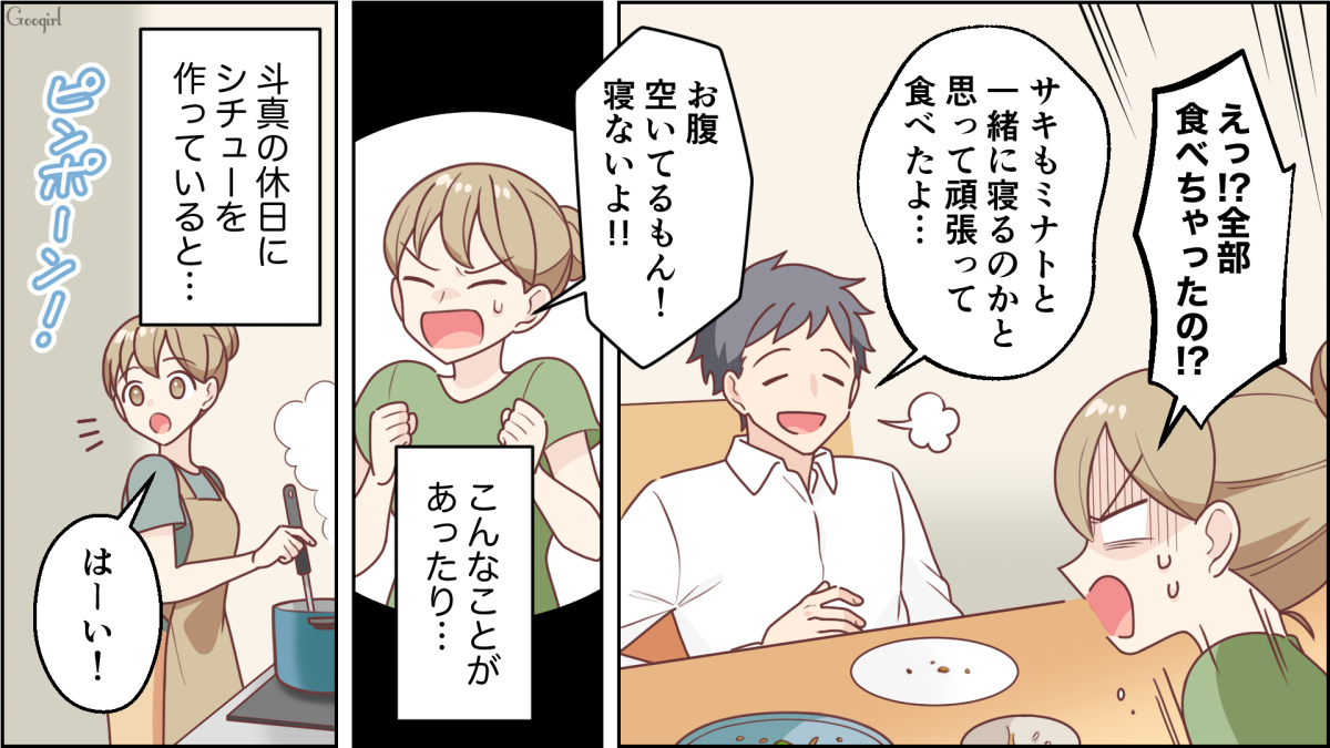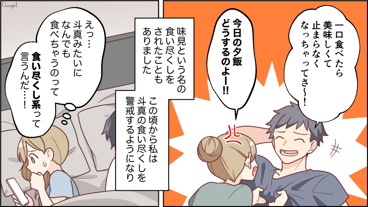 ▽ 一瞬目を離しただけで食い尽くされてしまうなんて、安心して食事もできませんね……! しかも、斗真は食い尽くしたことを全く反省してなさそうなところにも腹が立ちます! 他の人がいる場面では食い尽くさないようですが……?