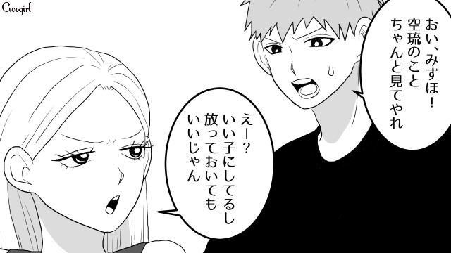 さみしそうに遊ぶ空琉の姿を見て、透はみずほに「ちゃんと見ていろ」と注意します。しかしみずほは反省するどころか、夏子を「あのおばさん」呼ばわりして大笑いをし……。