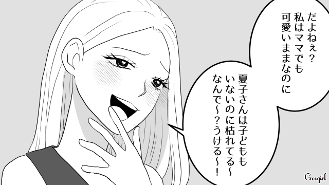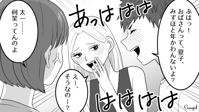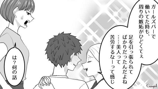 ▽ 夫と元カノの心ない言葉に、夏子は「どうして私がこんな扱いを受けなきゃいけないの?」と怒りと悲しみを覚えます。とうとう言い返そうとした夏子でしたが、突然みずほが身の上話をはじめました。