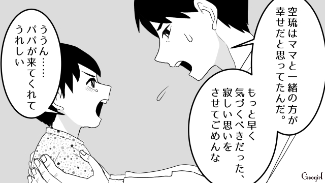 ▽ 養育費欲しさに、空琉を手放そうとしないみずほ。しかし、空琉が涙ながらに「パパと一緒にいたい」と告げた瞬間、母子関係は完全に崩れ去るのでした。茂雄は「もう養育費は払わない。その分、俺が責任を持って育てる」と宣言。当然の報いですね。