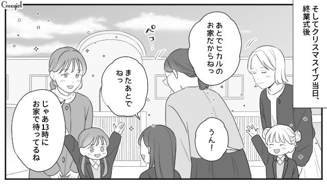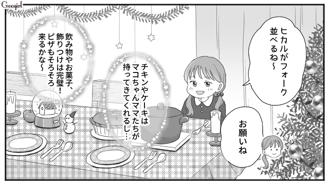▽ 夫アキヒロに断りを入れてもらい、ツリーも義実家に返してもらいました。しかしクリスマスイブ当日、安心してクリスマスパーティーの準備をしているミナミとヒカルのもとに、義母がやってきてしまいます。