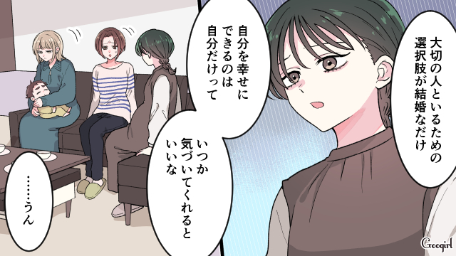 一方、かつての友達、百合、穂乃花、真由は一体どうしているのでしょうか? 今回は、「『私だって結婚できれば……!』結婚すれば必ず幸せになれると思っていた女の話」最終話をお届けします。