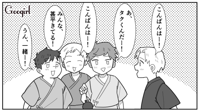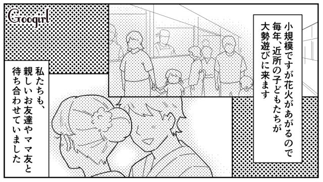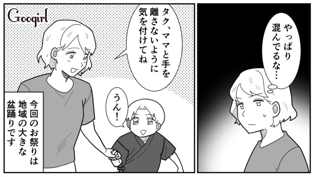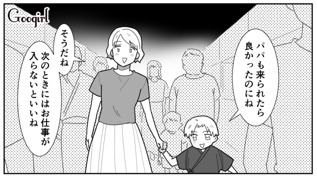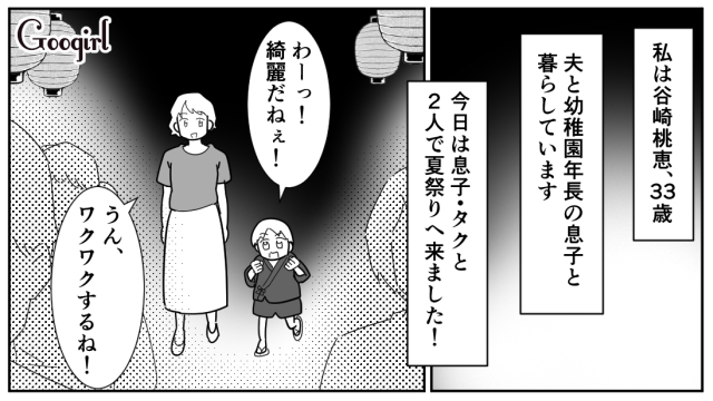 ▽ 桃恵が見かけた子は、1人で遊んでいて、なんだか不安ですね。あの人がパパのようですが……?