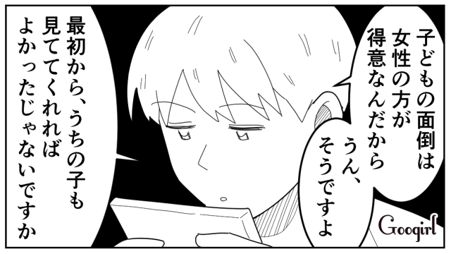 【スカッと漫画】女なら他人の子どもの面倒も見るべき? スマホに夢中のパパを撃退!【第5話】 -