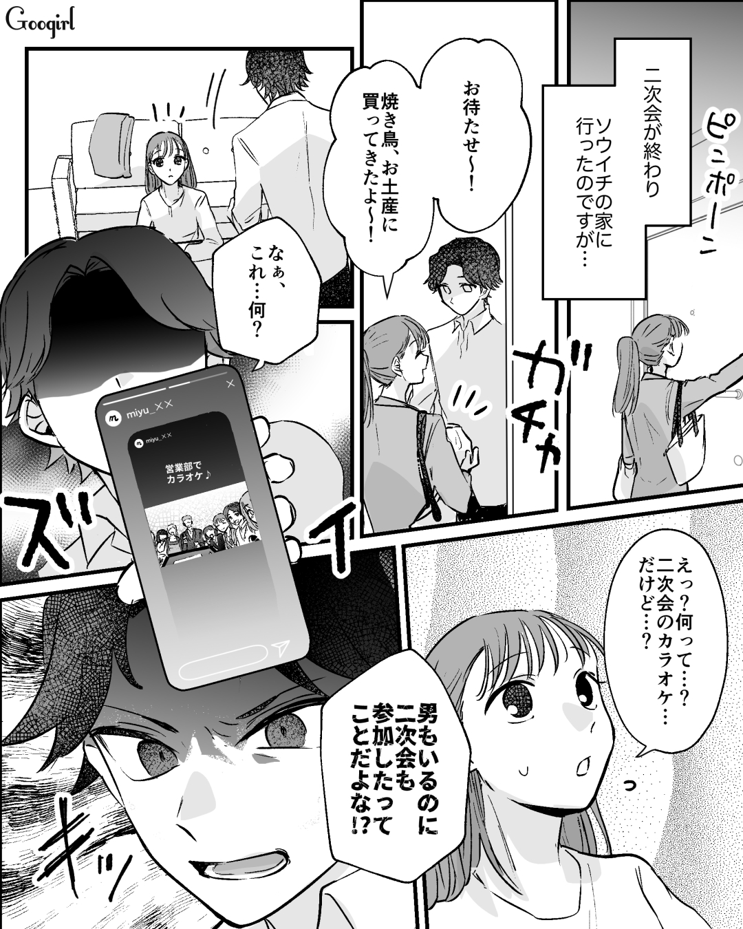 ▽ 仕事も覚えてきて結果を出せるようになってきたようで、ミユの毎日は充実していますね! 飲み会では二次会にも参加した方がいい場面ってよくあると思うのですが、ソウイチの最後のブチギレが怖すぎます……。