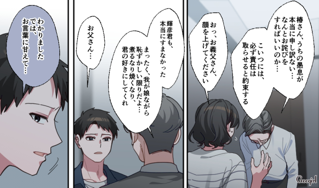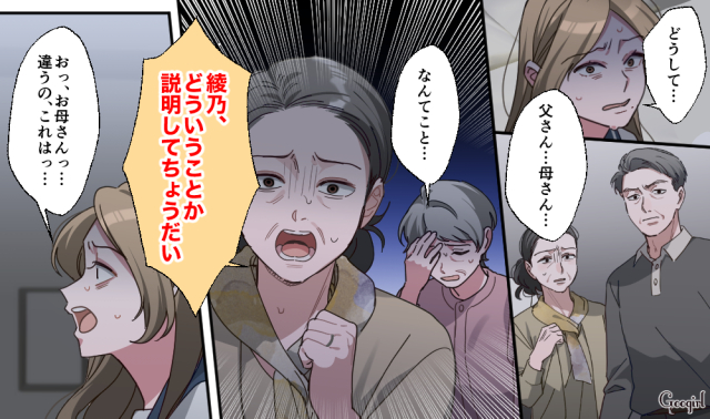 ▽ 椿・輝彦だけでなく、穂高・綾乃の両親まで登場し、ベッドルームは瞬く間に修羅場と化します。