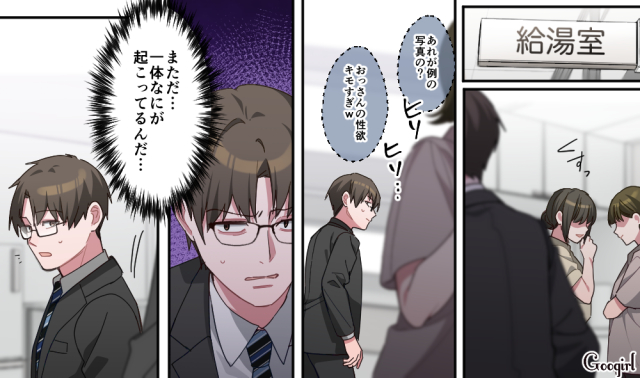 ▽ 自身の恥ずかしい写真が社内に流出し、地獄のような時間を過ごしている穂高。これもすべて、自身の行いの報いですね。