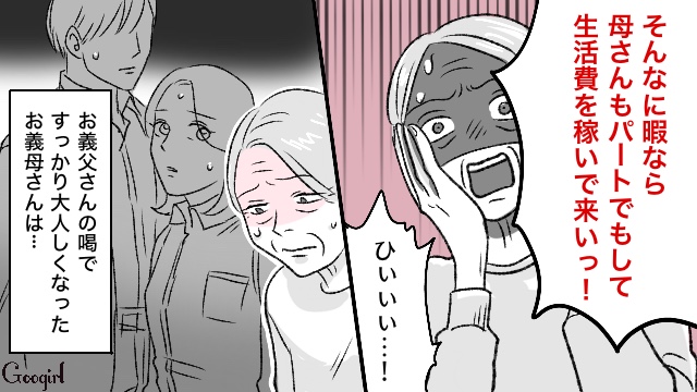 ▽ ナイスお義父さんです! 普段穏やかで怒らない人がキレると、かなり威力がありますよね……。義父はまともな人で本当によかったです! このまま義母が反省してくれるといいのですが……。