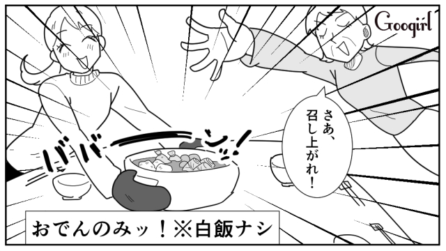 ▽ 手間暇かけた愛情たっぷりのおでんに向けられた不満そうな視線。イヤな予感しかしませんね……。