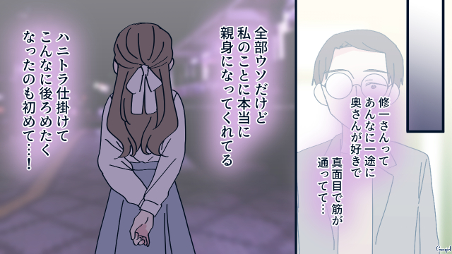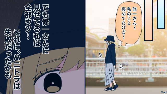 ハニトラの状況が知りたいまどかは、花恋と修一が会っているところをこっそり盗み聞きしました。そこで意外な一面も見ましたが、その後、花恋と修一は……。
