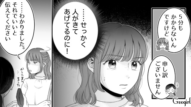 ▽ 元奥さん、京香の職場にアポなし訪問した藍子。仕事中に会うことはできないと断られ、カフェで待ち合わせを指定されました。約束の18時。10分遅れてきた京香に、藍子は我慢できずに声を荒げてしまうのでした……。