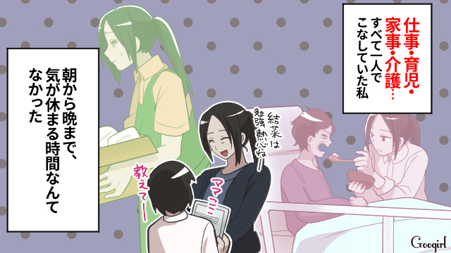 ▽ 義父亡き後、「義母の介護」という重圧に苦しめられる典子。そんな中、心の支えだった娘の結菜が家を出て不安になりますが、離婚を意識し始めたことで、希望の光が灯ったようにも見えます。