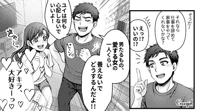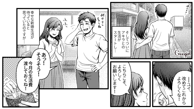 ▽ 専業主婦になることを快諾してくれたアキラは頼もしいと思いましたが、有無を言わさず生活費は4万……。子どもがいないにしても4万はかなり厳しい金額に思えますが……?