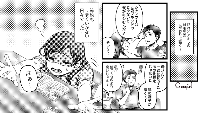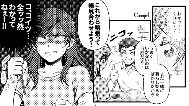 ▽ 一生懸命節約を頑張っているのに、無駄なこだわりで足を引っ張られるのは腹が立ちますね! 金額UP交渉も真剣に向き合ってくれず、ユイが可哀想です……。
