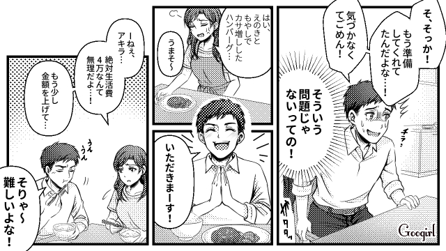 結婚後の生活費の取り決めは問題が起こりがちですよね……。今は何でも値上げラッシュで、贅沢をしなくても生活費はかさみがちです。今回は生活費4万を提示され、夫に現実を突きつけたエピソードの第3話をご紹介します!