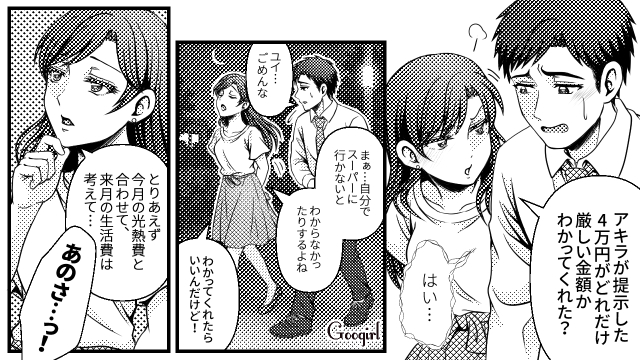 結婚後の生活費の取り決めは問題が起こりがちですよね……。今は何でも値上げラッシュで贅沢をしなくても生活費はかさみがちです。今回は生活費4万を提示され、夫に現実を突きつけたエピソードの最終話をご紹介します!