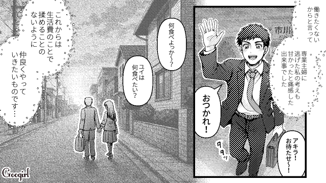 ▽ ツラい思いはしましたが、最終的にアキラが考えを改めてくれてよかったですね! これでも生活費をくれないとなると、一緒に暮らすのは難しいですものね……。ユイもパートとしてまた働き始めたようですし、金銭的な余裕も増えてよかったのではないでしょうか!
