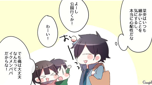 ▽ 自分で気がついて率先することがないばかりではなく、やたら呑気な父親ですよね! ママも一緒ならまだ良いと思うのですが……。本当に、ひとりで子どもたちを無事公園で遊ばせることができるのでしょうか?