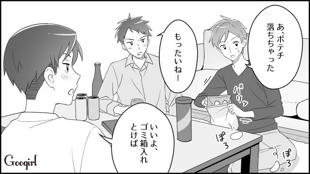 ▽ なんと勇人は同僚たちを家に連れてきていました! しかも昼間から酒盛りをするんですか!?