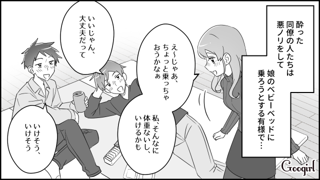 【スカッと漫画】妻の不在中に同僚を連れ込んだ夫…同僚の女がベビーベッドで?【第3話】 -