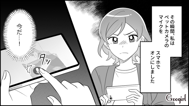 舞は4か月の娘を育てるママ。でも夫の勇人は身勝手な性格です。あるとき舞は、実家から飼い猫の様子を確認するためにペットカメラを起動します。すると勇人が同僚を家に連れ込み、酒盛りをしていました。勇人たちの勝手な行動に、ついに舞は反撃を決意して……。