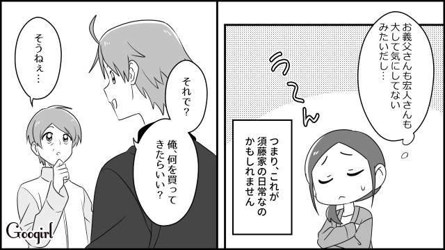 ▽ どうやら義母にはやらかし癖があるようですね。義父も宏人もすでに慣れているようで、のほほんとした対応です。これが日常となればそうなるのも分からないでもないですが……初めて見るとちょっとびっくりしてしまいますね。