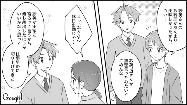 三連休にまた義実家へ料理を作りに行くことになった紗英。こう頻繁だと大変ですが、そろそろこの悶々とした状態にケリがつきそうです!