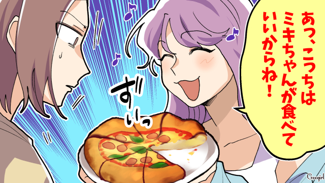 ▽ レンとライが一生懸命作ったピザを、アツシは頑張りを褒めることもなくけなしました。マリナは「きちんと整えないミキが悪い」と責任を押しつけてきます。さらに、子どもたちの手作りピザを「全部食べていいよ」と、マリナから押し付けられてしまいます。
