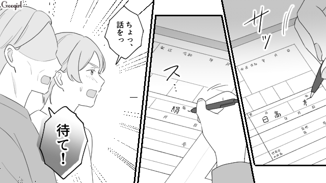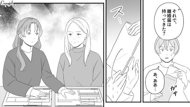 ▽ 司は反省したようですが、迷わず離婚届にサインする2人に慌てることしかできないようです。でも、隣の義父は……?