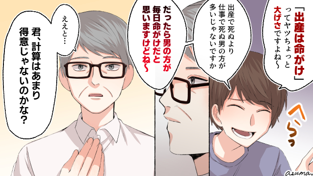 出産より仕事のほうが命がけだと言う経理部の夫を妻の父が撃退した話