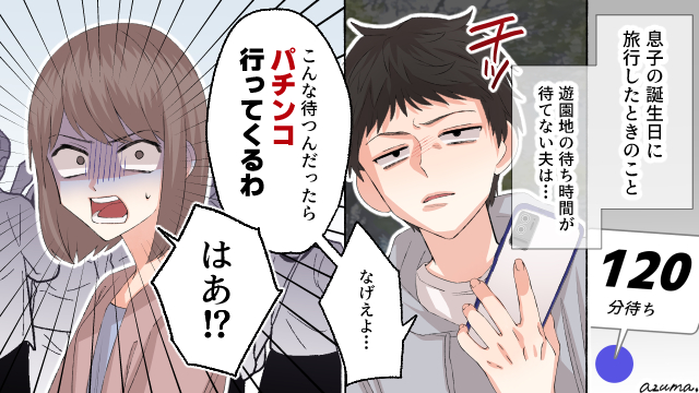 せっかくの息子の誕生日なのに……。わざわざ3人分の入場料を払ったのにパチンコ? ありえない! 夫のことは無視して、息子と二人で楽しみました。夕方になって、夫に帰るよと連絡したら『もうちょい待って』『今いいところ』なんて返信が来たので怒りがピークに。