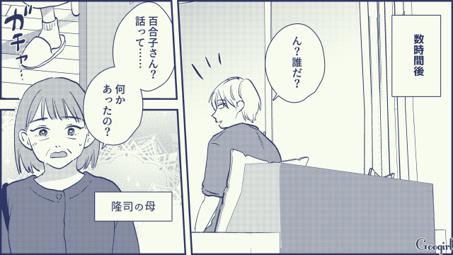 夕飯を作ってくれた百合子に対し、今度は唐揚げを要求しますが、「文句があるなら自分で作れ!」と怒鳴られ渋々食べます。食後、片付けはするからお風呂の用意をしてほしいと頼まれますが、「今日は引っ越しだからいろいろ手伝うけど、明日からは百合子が動いてくれるんだよな?」と不満を口にします。さらに共働きだけど男は大黒柱で、家事は女の役目だと言い出した隆司。女の仕事は腰掛けだと言われ、百合子は給料明細を見せたのでした。